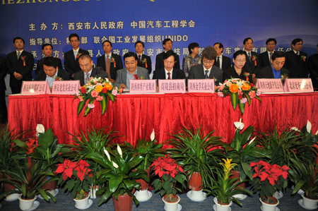 本次論壇由西安市人民政府和中國汽車工程學(xué)會主辦,高陵縣人民政府、西安市科技局及陜西汽車集團有限責(zé)任公司承辦。論壇主題為“統(tǒng)籌科技資源,推動渭北工業(yè)新區(qū)跨越發(fā)展”。高陵縣政府還與中化近代環(huán)保化工(西安)有限公司、陜汽德仕集團、北京光華榮昌汽車零部件有限公司、西安瑞通能源科技有限公司、西安科航煤礦機械設(shè)有限公司等9家企業(yè)簽訂了產(chǎn)業(yè)項目投資協(xié)議,并就涇河工業(yè)園基礎(chǔ)設(shè)施建設(shè)、統(tǒng)籌城鄉(xiāng)等10個重大項目簽訂了戰(zhàn)略合作協(xié)議,合同總投資達180億元。